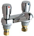 Lavatory Sink Faucet, 4" C-C Integral Cast Brass Spout, E12 - 2.2 GPM (8.3 L/min) Pressure Compensating Softflo® Aerator, 317 - 4" Metal Wristblade Handles with Secured Red and Blue Service Buttons, Quaturn™ Operating Cartridges