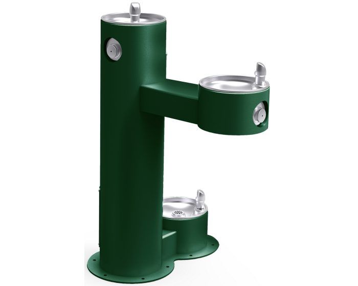 Halsey Taylor Endura II Tubular Outdoor Fountain, Bi-Level Pedestal with Pet Station, Non-Filtered, Non-Refrigerated, Evergreen Finish. Ships directly from the factory.