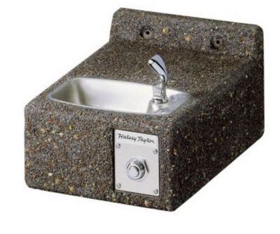 Halsey-Taylor Face-mounted, with freeze-resistant valve system, weather-resistant exposed sierra stone aggregate fountain for year-round beauty with minimum maintenance.