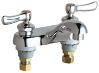 Lavatory Sink Faucet, 4" C-C Integral Cast Brass Spout, E12VP - Vandal Proof 2.2 GPM (8.3 L/min) Pressure Compensating Softflo® Aerator, 390 - 2 3/8" Metal Curved Lever Handles with Secured Red and Blue Service Buttons, Quaturn™ Operating Cartridges